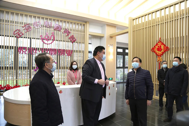2月9日下昼,奉贤戋戋委书记庄木弟;奉贤区委办主任史明;奉贤区卫健委党工委副书记、主任、区老龄办主任褚国华;奉贤区民政局副局长周斌等一行,在奉贤区金海街道党工委书记、人大工委主任张华;奉贤区金海街道服务处副主任李佳等陪同下,来到上海奉贤区金海悦心颐养院考察调研。